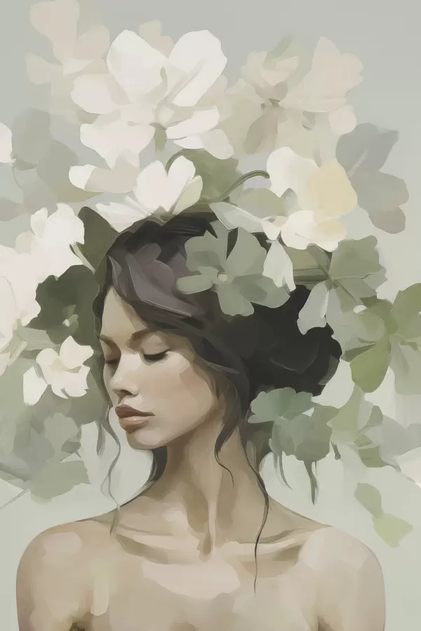 Plakat Portret dziewczyny w wieńcu z kwiatów f47807
