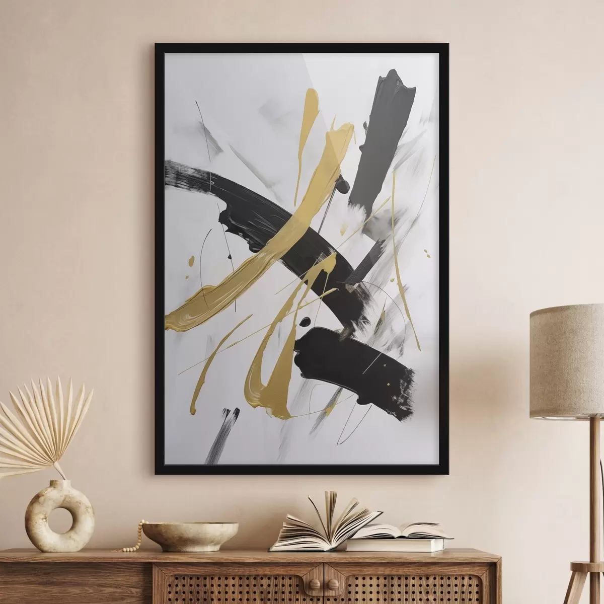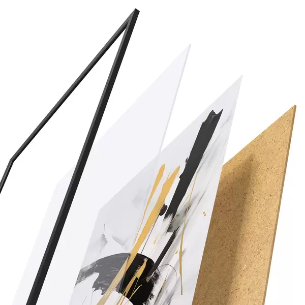 Plakat składa się z ramy, pleksi, wydrukowanego obrazu i podkładu z płyty wiórowej. Plakat można natychmiast zawiesić na ścianie dzięki uchwytom z tyłu.