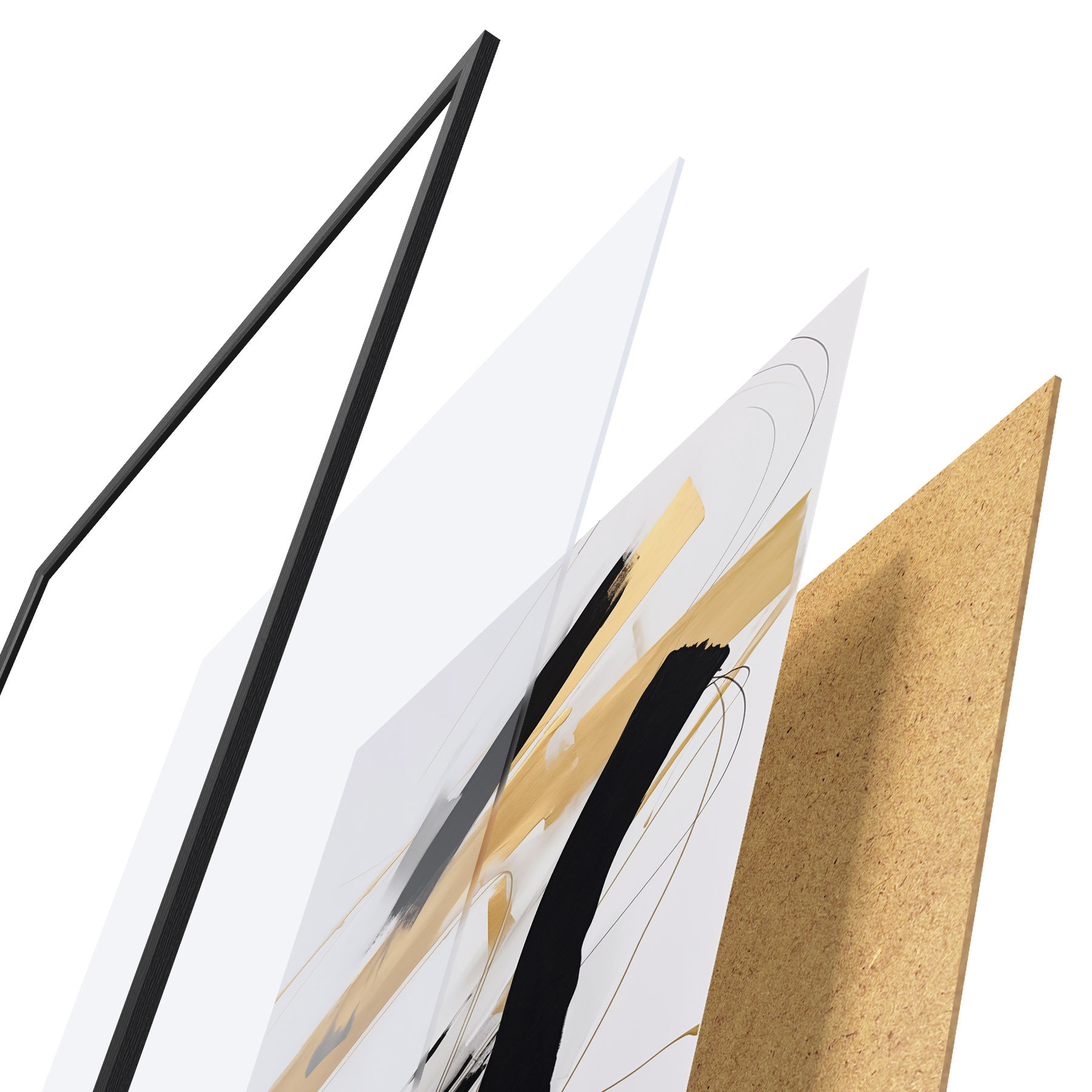 Plakat składa się z ramy, pleksi, wydrukowanego obrazu i podkładu z płyty wiórowej. Plakat można natychmiast zawiesić na ścianie dzięki uchwytom z tyłu.