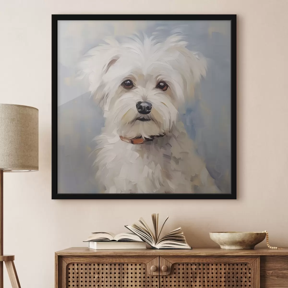 Obraz można delikatnie przetrzeć suchą, miękką szmatką lub gąbką; nie zaleca się używania mokrych produktów. Użycie wilgotnej gąbki jest dozwolone tylko wtedy, gdy obraz został polakierowany.