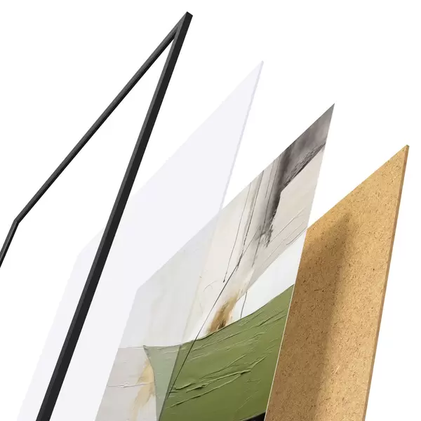 Plakat składa się z ramy, pleksi, wydrukowanego obrazu i podkładu z płyty wiórowej. Plakat można natychmiast zawiesić na ścianie dzięki uchwytom z tyłu.