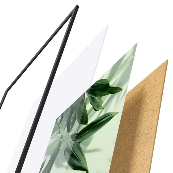 Plakat składa się z ramy, pleksi, wydrukowanego obrazu i podkładu z płyty wiórowej. Plakat można natychmiast zawiesić na ścianie dzięki uchwytom z tyłu.