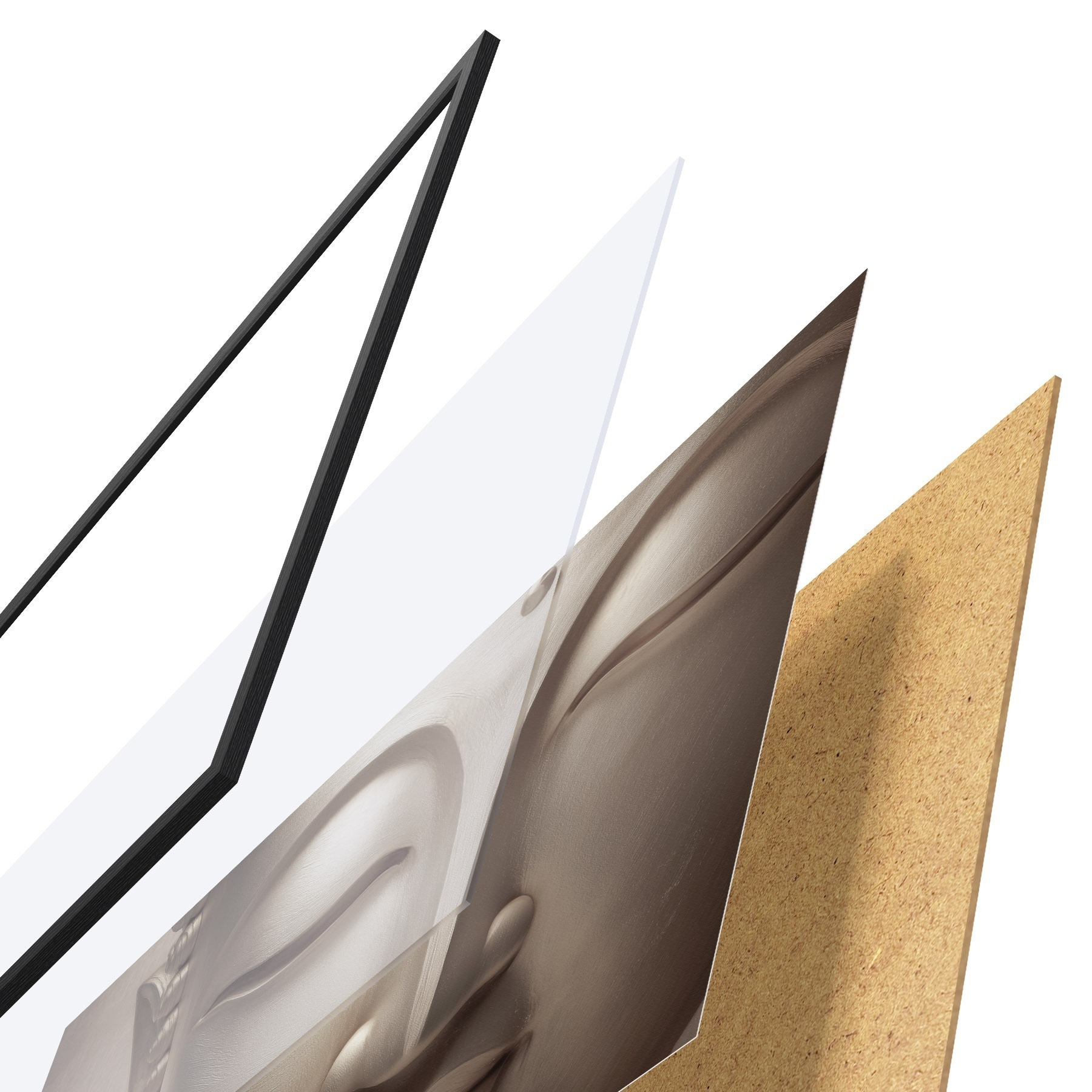 Plakat składa się z ramy, pleksi, wydrukowanego obrazu i podkładu z płyty wiórowej. Plakat można natychmiast zawiesić na ścianie dzięki uchwytom z tyłu.