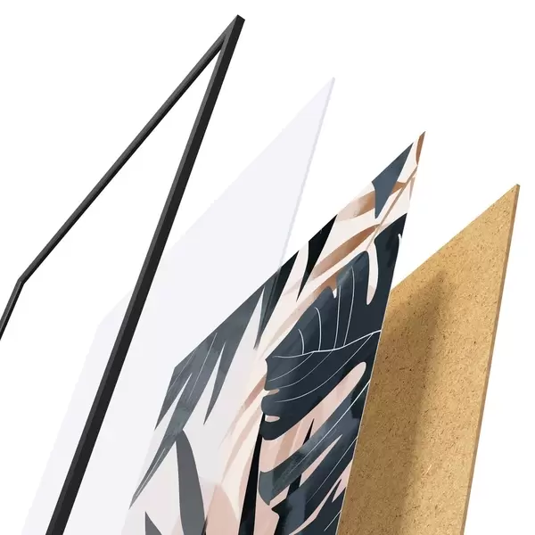 Plakat składa się z ramy, pleksi, wydrukowanego obrazu i podkładu z płyty wiórowej. Plakat można natychmiast zawiesić na ścianie dzięki uchwytom z tyłu.