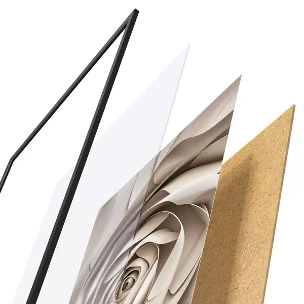 Plakat składa się z ramy, pleksi, wydrukowanego obrazu i podkładu z płyty wiórowej. Plakat można natychmiast zawiesić na ścianie dzięki uchwytom z tyłu.