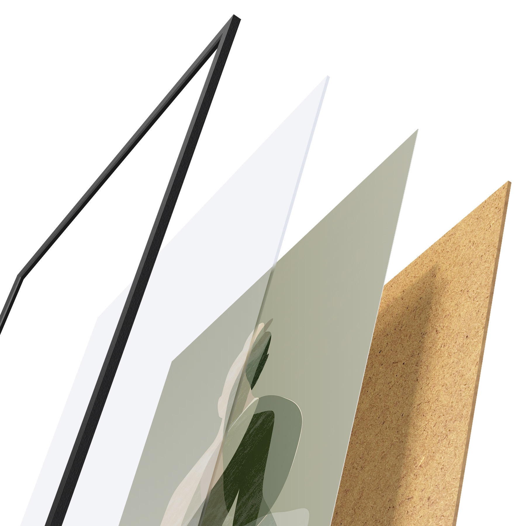 Plakat składa się z ramy, pleksi, wydrukowanego obrazu i podkładu z płyty wiórowej. Plakat można natychmiast zawiesić na ścianie dzięki uchwytom z tyłu.