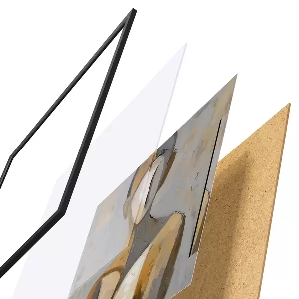 Plakat składa się z ramy, pleksi, wydrukowanego obrazu i podkładu z płyty wiórowej. Plakat można natychmiast zawiesić na ścianie dzięki uchwytom z tyłu.