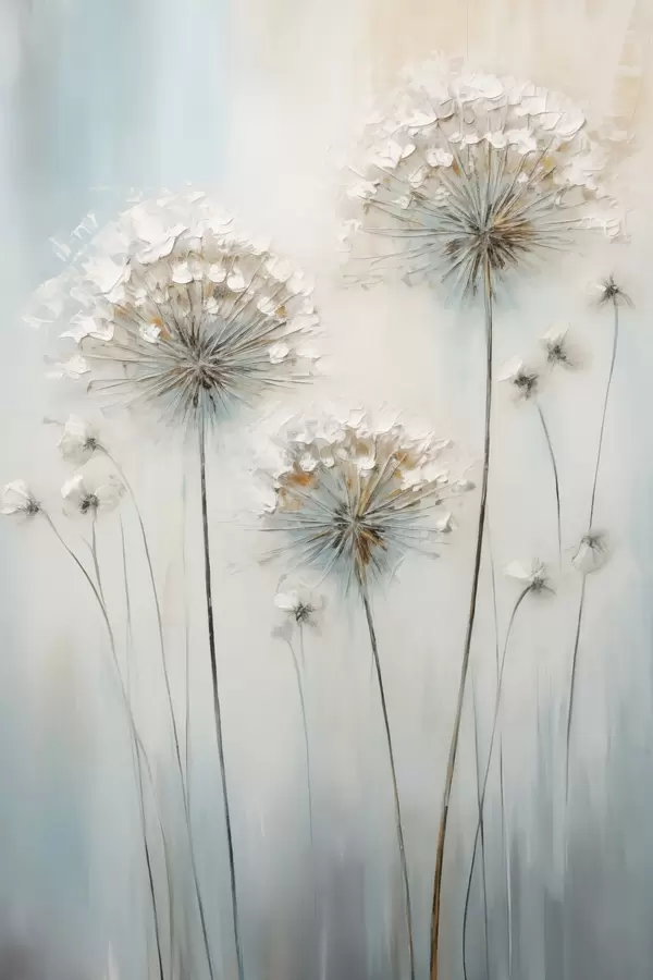 Plakat Teksturowany styl malowania mleczy na delikatnym niebiesko-białym tle f47855