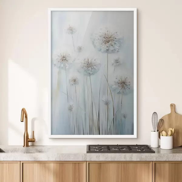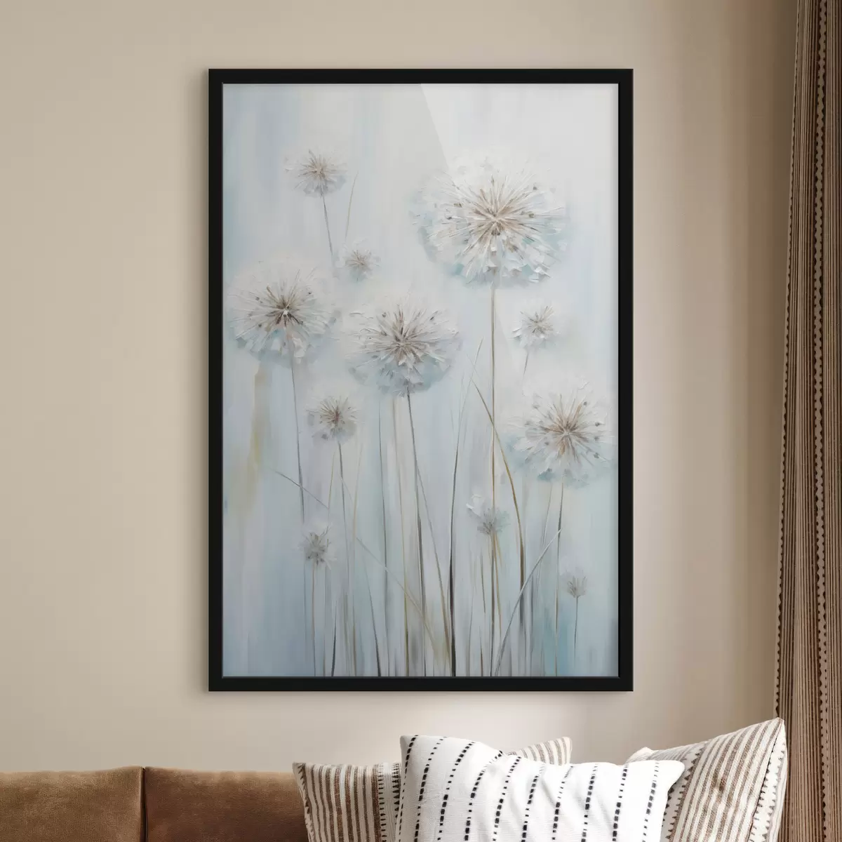 Plakat Teksturowany styl malowania mleczy na delikatnym niebiesko-białym tle f47856