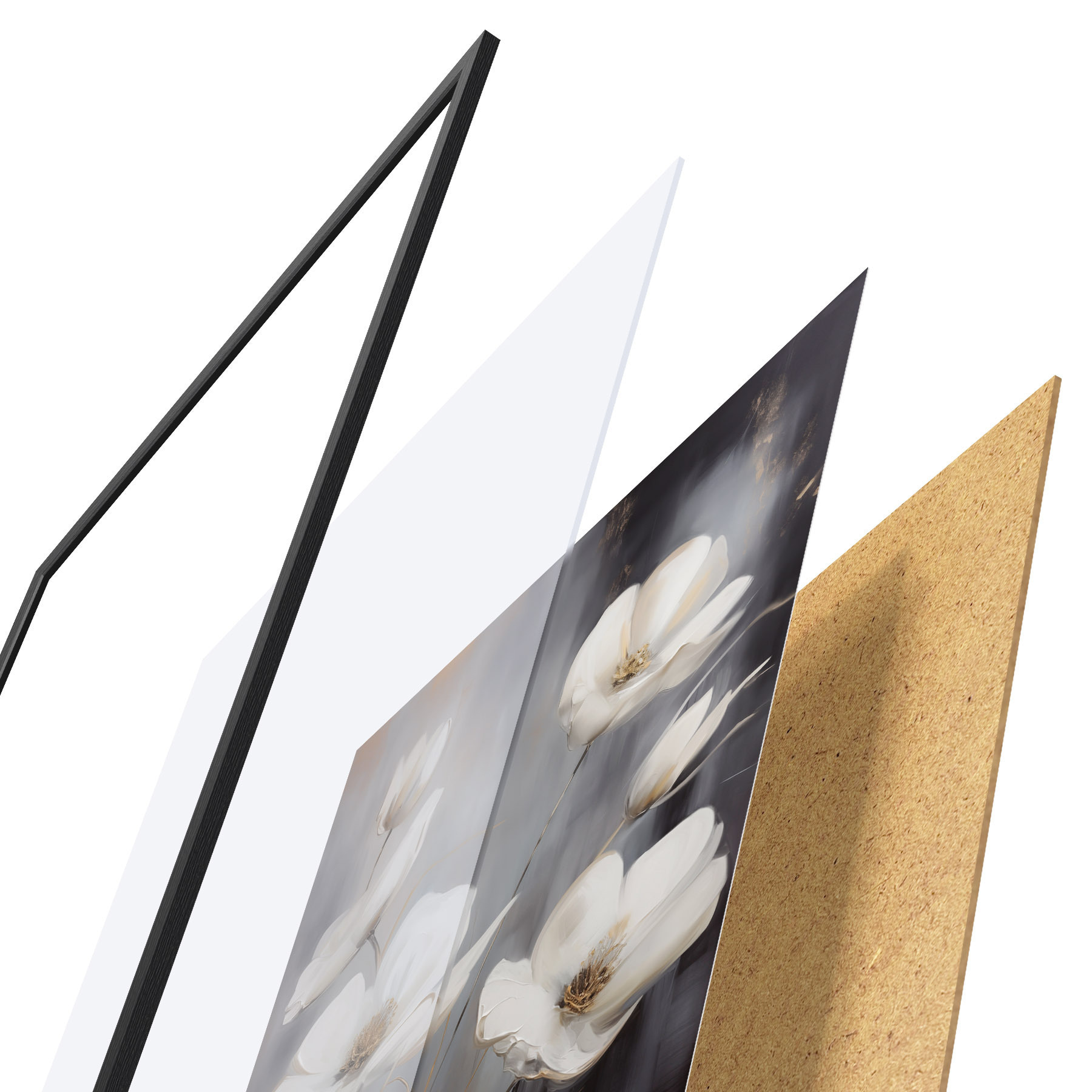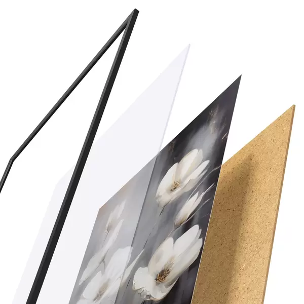 Plakat składa się z ramy, pleksi, wydrukowanego obrazu i podkładu z płyty wiórowej. Plakat można natychmiast zawiesić na ścianie dzięki uchwytom z tyłu.