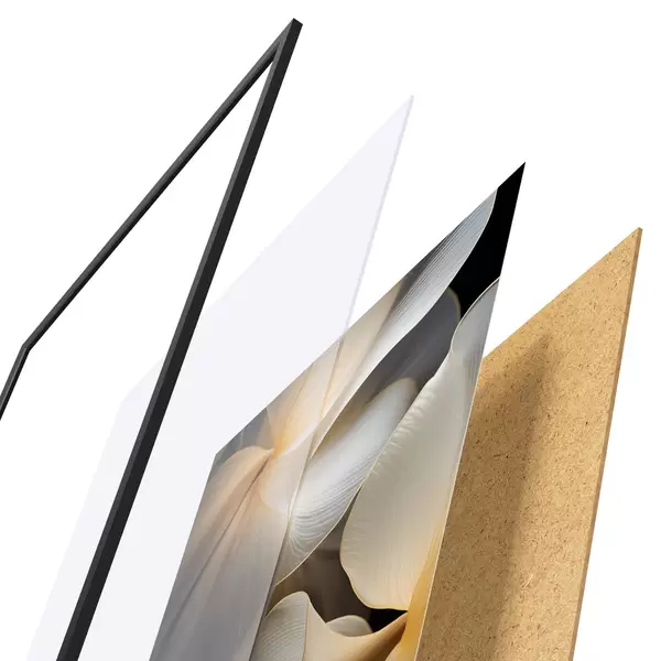Plakat składa się z ramy, pleksi, wydrukowanego obrazu i podkładu z płyty wiórowej. Plakat można natychmiast zawiesić na ścianie dzięki uchwytom z tyłu.