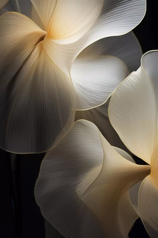 Poster Abstrakcyjne, płynne, półprzezroczyste płatki o delikatnych liniach na ciemnym tle. Nr f47859