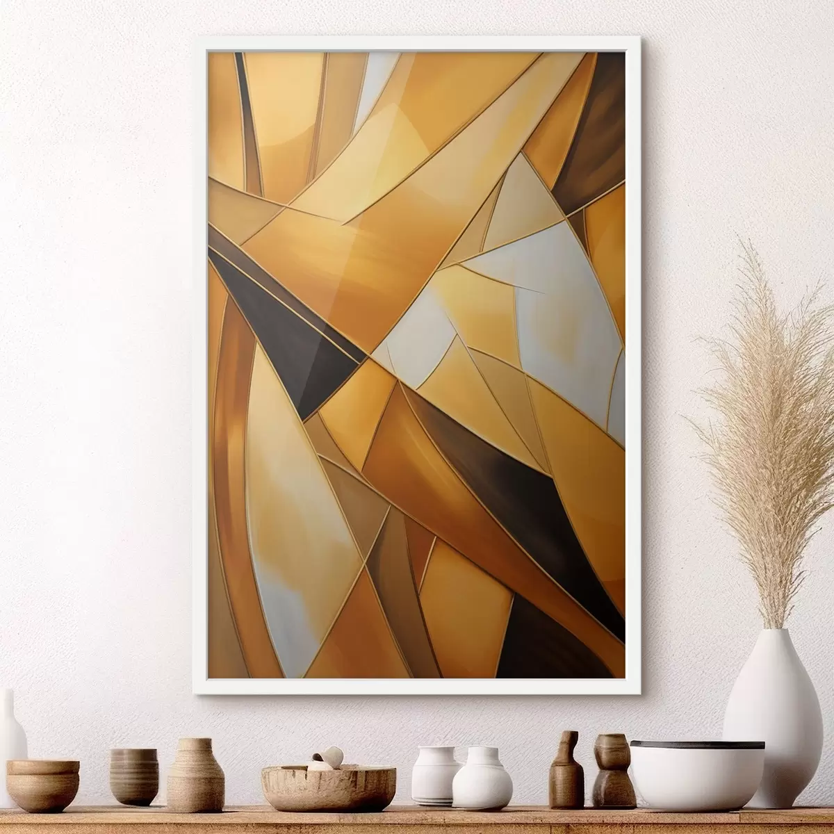 Plakat Abstrakcyjne geometryczne kształty w odcieniach pomarańczowego, brązowego i białego z cienkimi konturami na teksturowanym tle. f47863