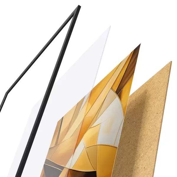 Plakat składa się z ramy, pleksi, wydrukowanego obrazu i podkładu z płyty wiórowej. Plakat można natychmiast zawiesić na ścianie dzięki uchwytom z tyłu.