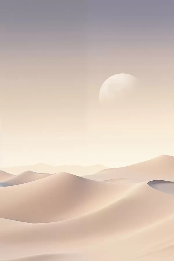 Plakat Pustynny krajobraz z falującymi wydmami pod delikatnym pastelowym niebem, w tle odległe góry. f47866