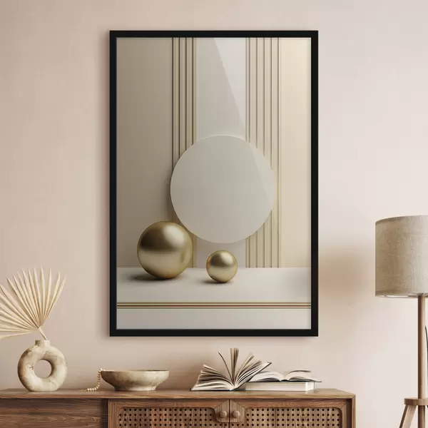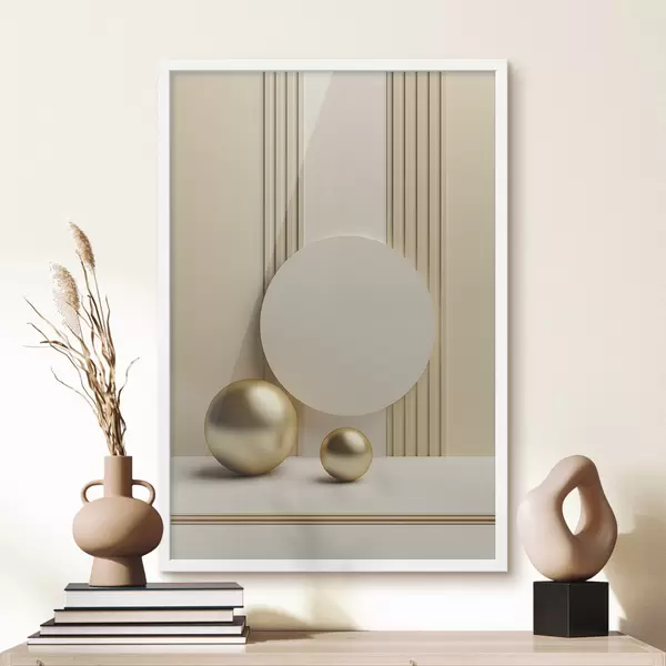 Poster Abstrakcyjna beżowa sztuka nowoczesna z pionowymi liniami i kulami Nr f47872