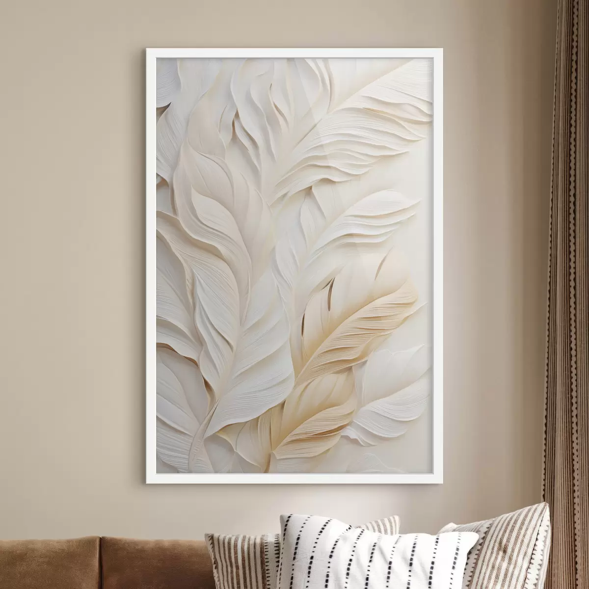 Plakat Kremowe pióra nakładające się na siebie, na delikatnym, jasnym tle f47884