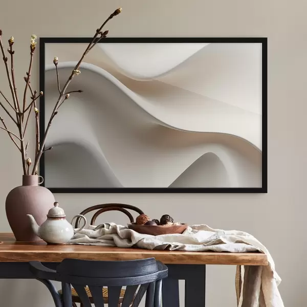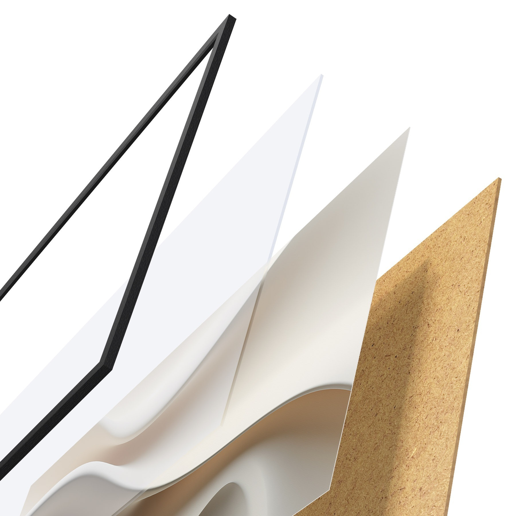 Plakat składa się z ramy, pleksi, wydrukowanego obrazu i podkładu z płyty wiórowej. Plakat można natychmiast zawiesić na ścianie dzięki uchwytom z tyłu.