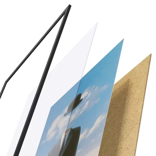 Plakat składa się z ramy, pleksi, wydrukowanego obrazu i podkładu z płyty wiórowej. Plakat można natychmiast zawiesić na ścianie dzięki uchwytom z tyłu.