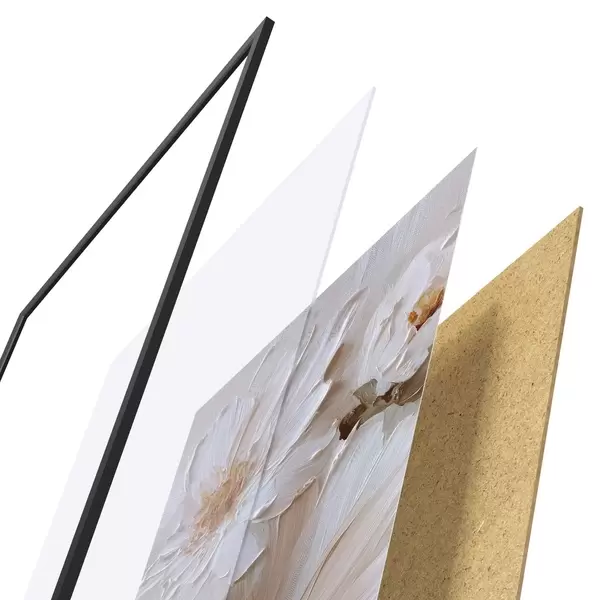 Plakat składa się z ramy, pleksi, wydrukowanego obrazu i podkładu z płyty wiórowej. Plakat można natychmiast zawiesić na ścianie dzięki uchwytom z tyłu.