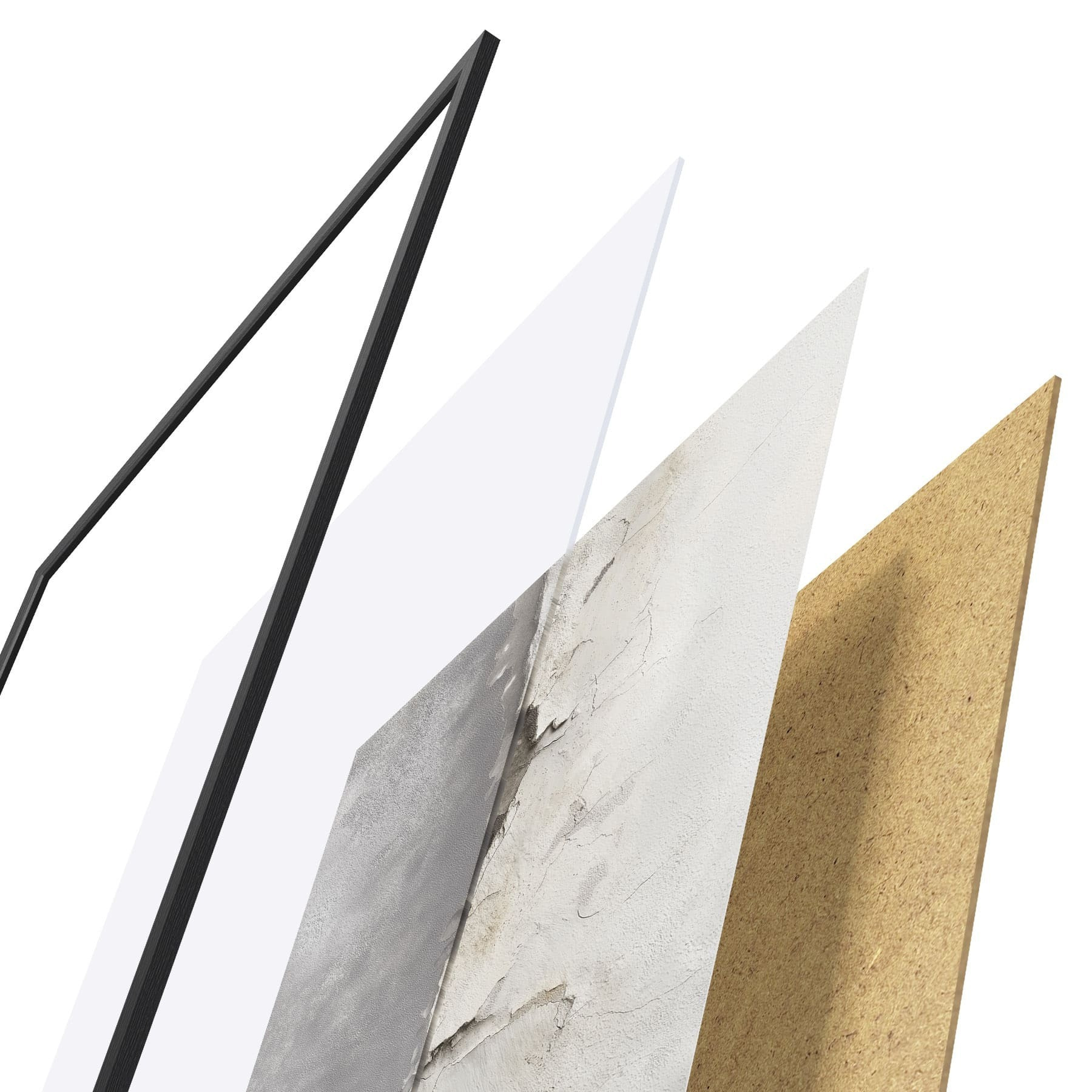 Plakat składa się z ramy, pleksi, wydrukowanego obrazu i podkładu z płyty wiórowej. Plakat można natychmiast zawiesić na ścianie dzięki uchwytom z tyłu.