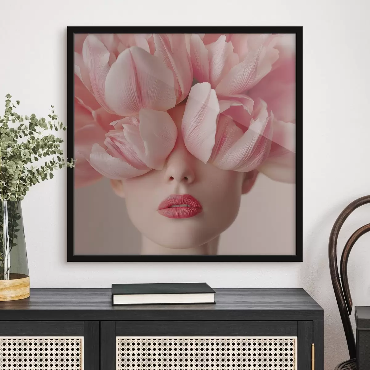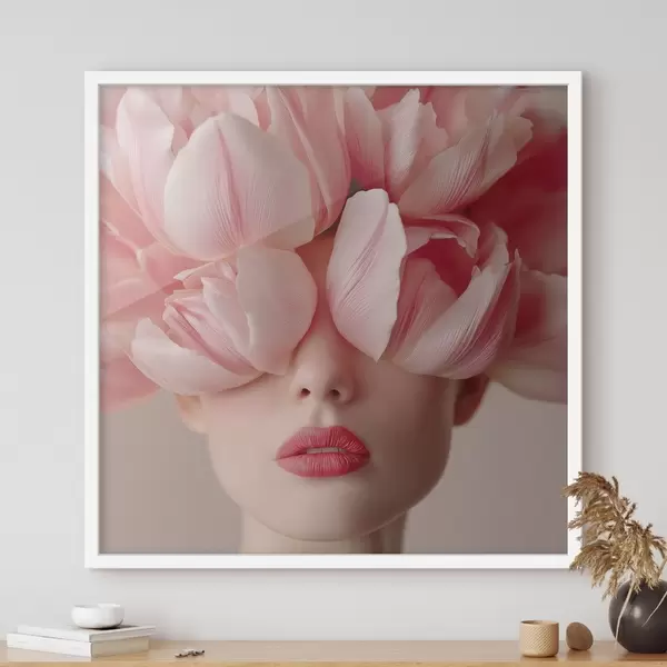 Plakat Portret kobiety z różowymi płatkami f47920