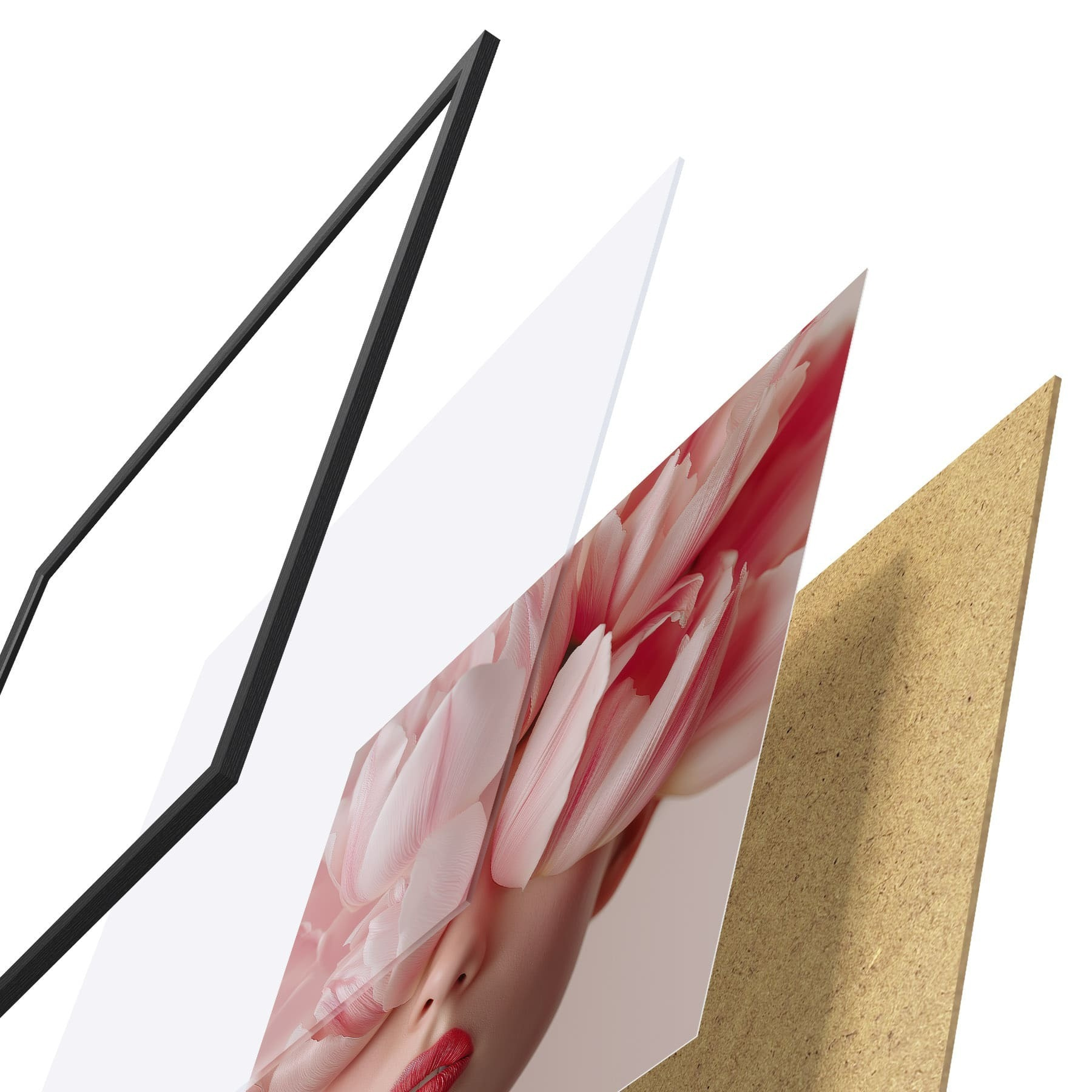 Plakat składa się z ramy, pleksi, wydrukowanego obrazu i podkładu z płyty wiórowej. Plakat można natychmiast zawiesić na ścianie dzięki uchwytom z tyłu.