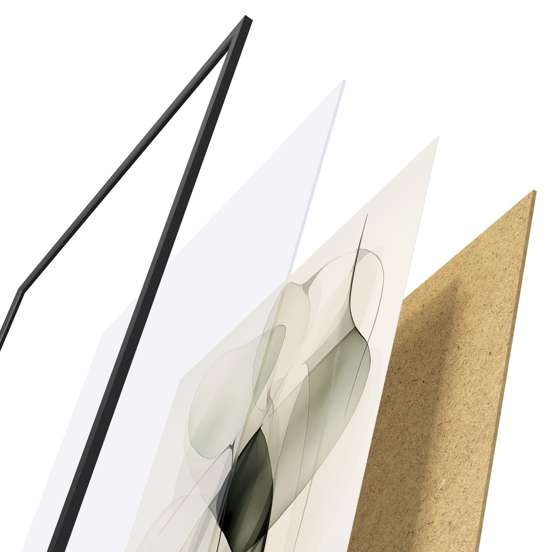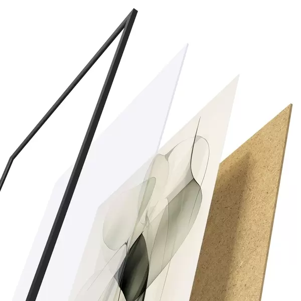 Plakat składa się z ramy, pleksi, wydrukowanego obrazu i podkładu z płyty wiórowej. Plakat można natychmiast zawiesić na ścianie dzięki uchwytom z tyłu.
