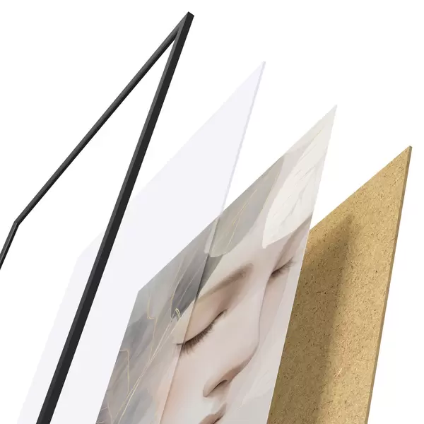 Plakat składa się z ramy, pleksi, wydrukowanego obrazu i podkładu z płyty wiórowej. Plakat można natychmiast zawiesić na ścianie dzięki uchwytom z tyłu.
