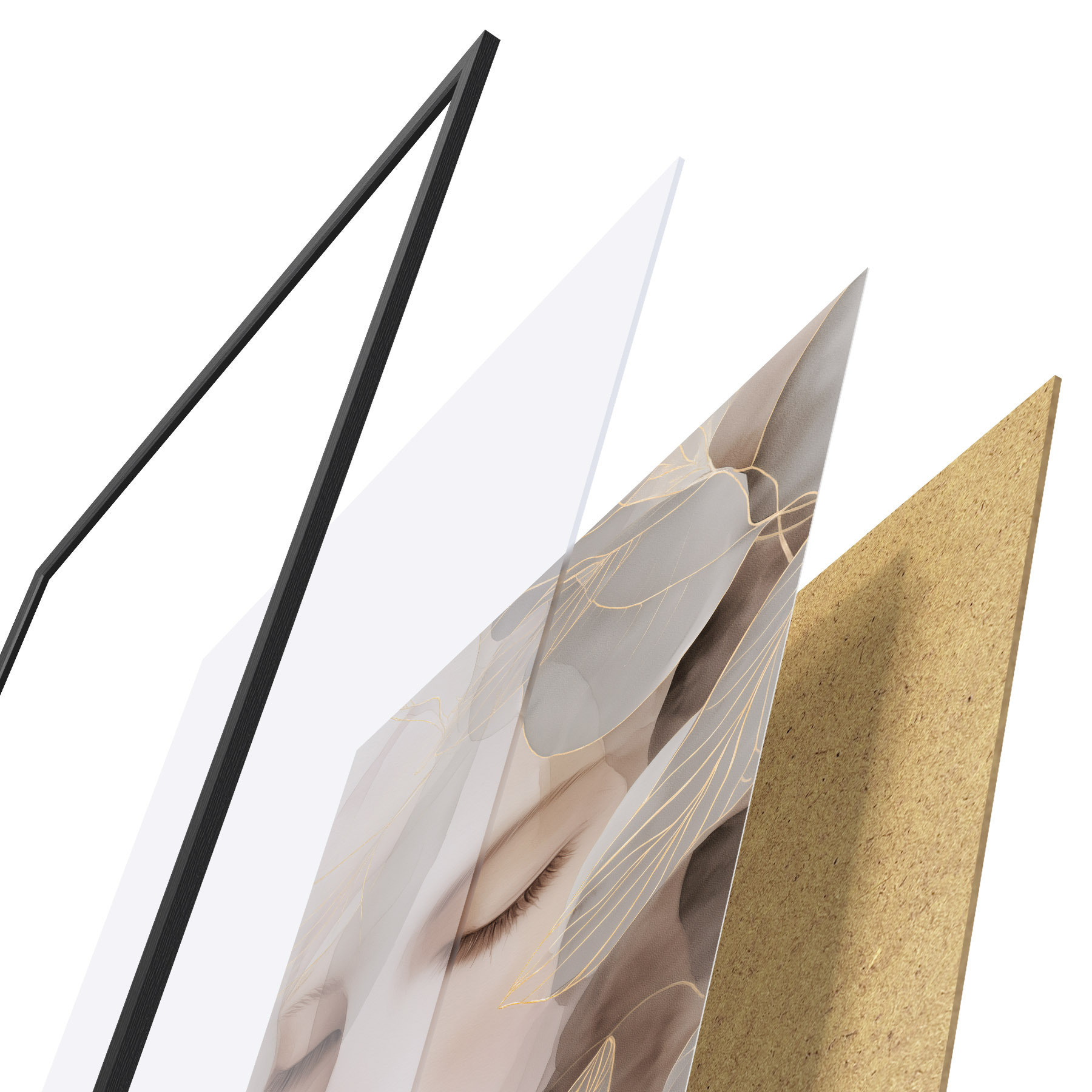 Plakat składa się z ramy, pleksi, wydrukowanego obrazu i podkładu z płyty wiórowej. Plakat można natychmiast zawiesić na ścianie dzięki uchwytom z tyłu.