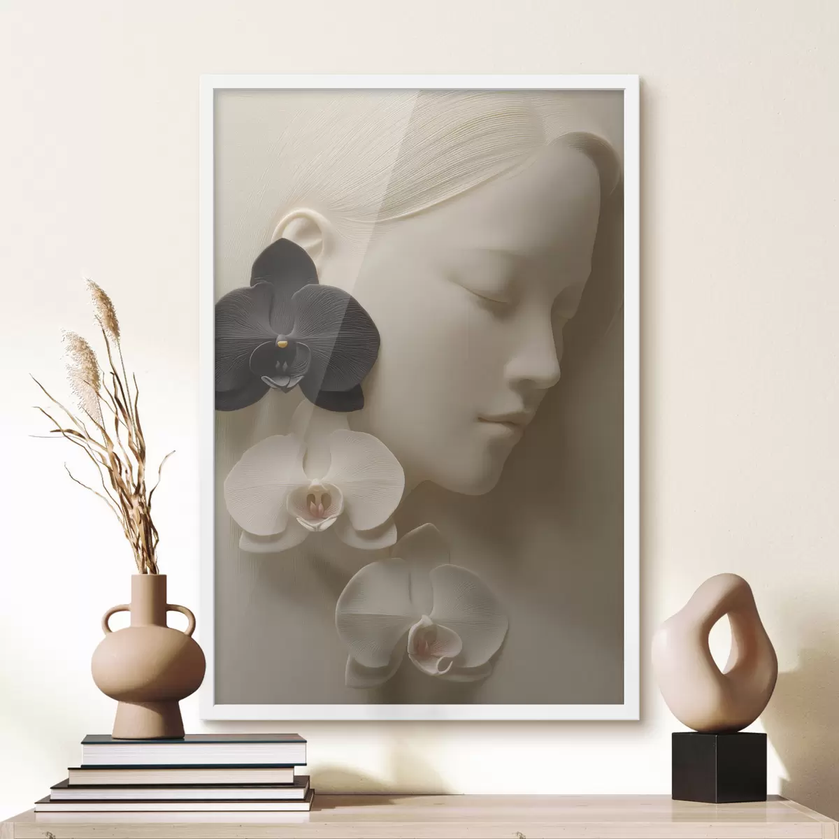 Poster dziewczyna z orchideami w stylu płaskorzeźby Nr f47941