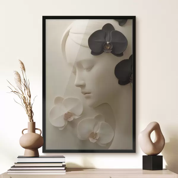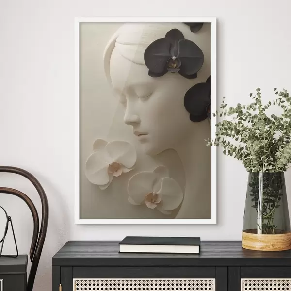 Poster dziewczyna z orchideami w stylu płaskorzeźby Nr f47942