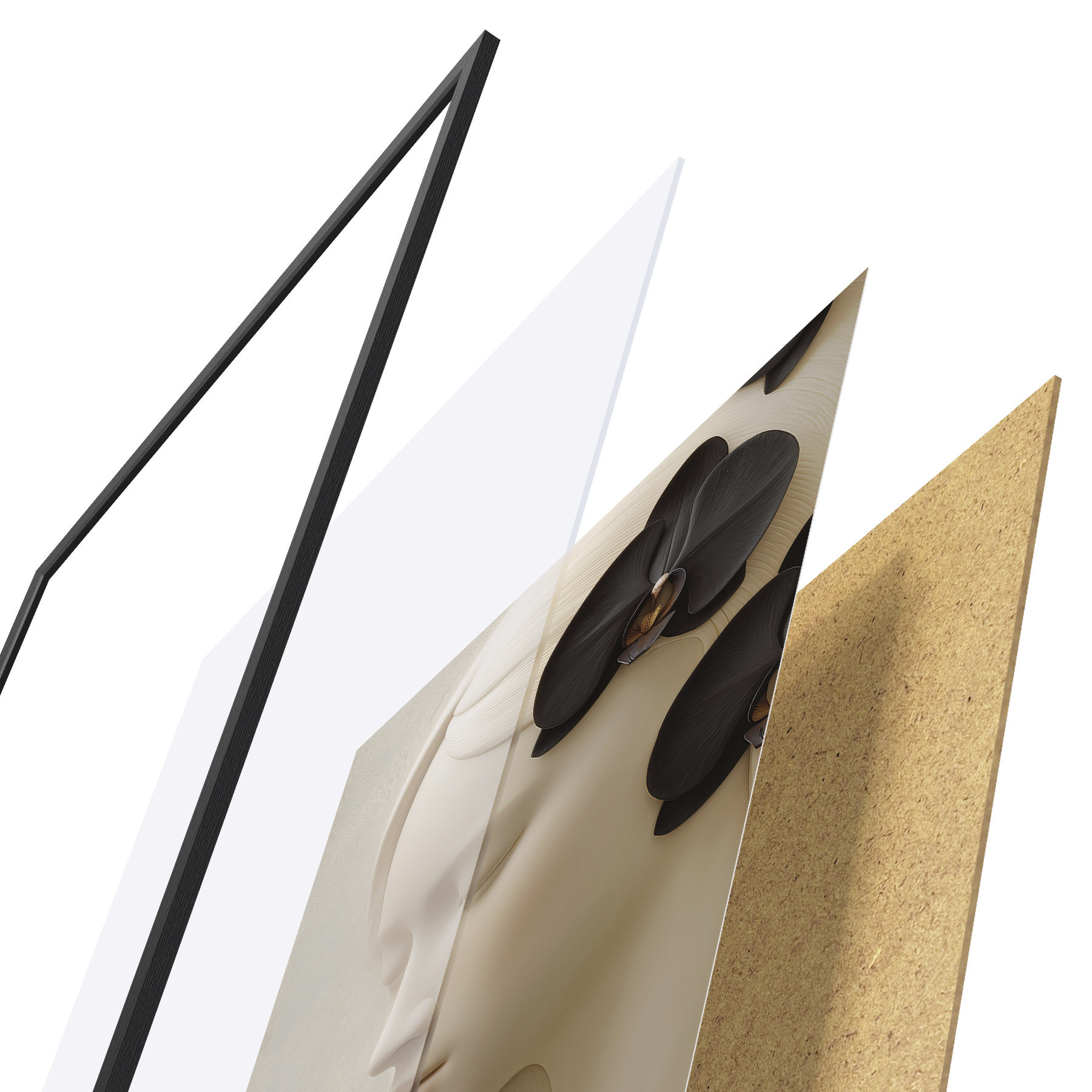 Plakat składa się z ramy, pleksi, wydrukowanego obrazu i podkładu z płyty wiórowej. Plakat można natychmiast zawiesić na ścianie dzięki uchwytom z tyłu.
