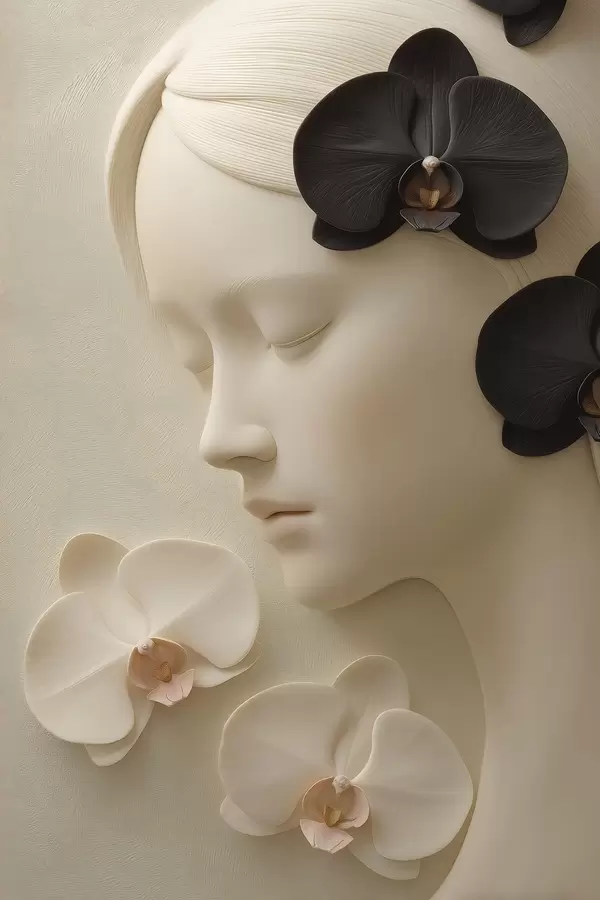 Poster dziewczyna z orchideami w stylu płaskorzeźby Nr f47942