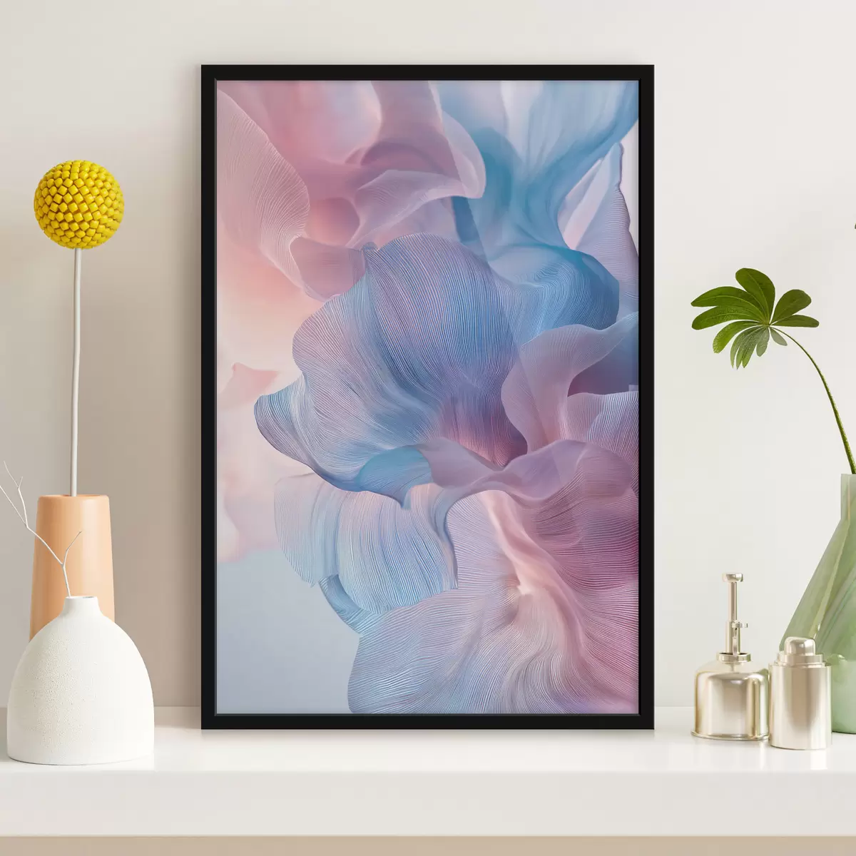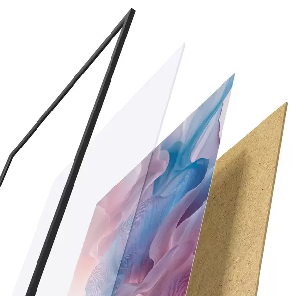 Plakat składa się z ramy, pleksi, wydrukowanego obrazu i podkładu z płyty wiórowej. Plakat można natychmiast zawiesić na ścianie dzięki uchwytom z tyłu.