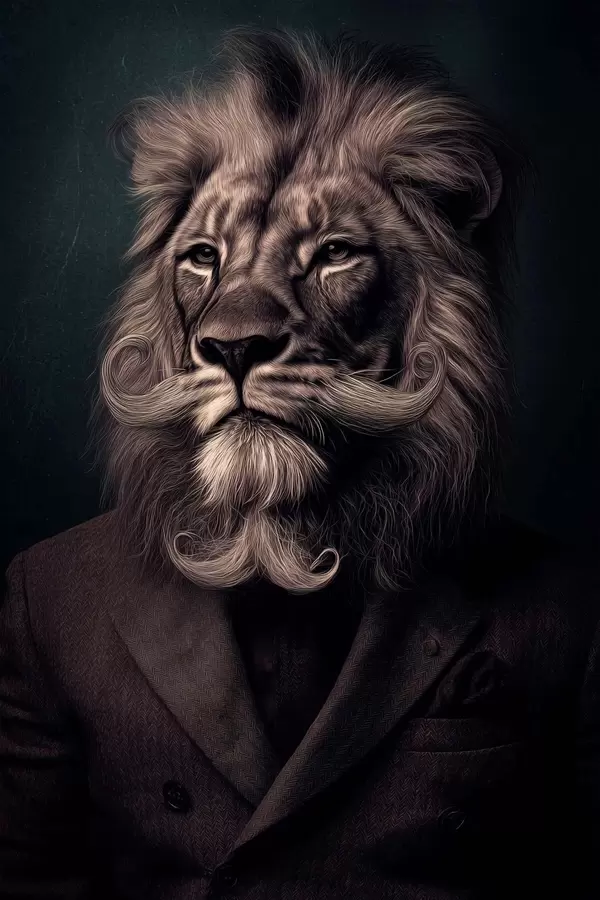 Poster lew z brodą w stylu fryzjera Nr f47947