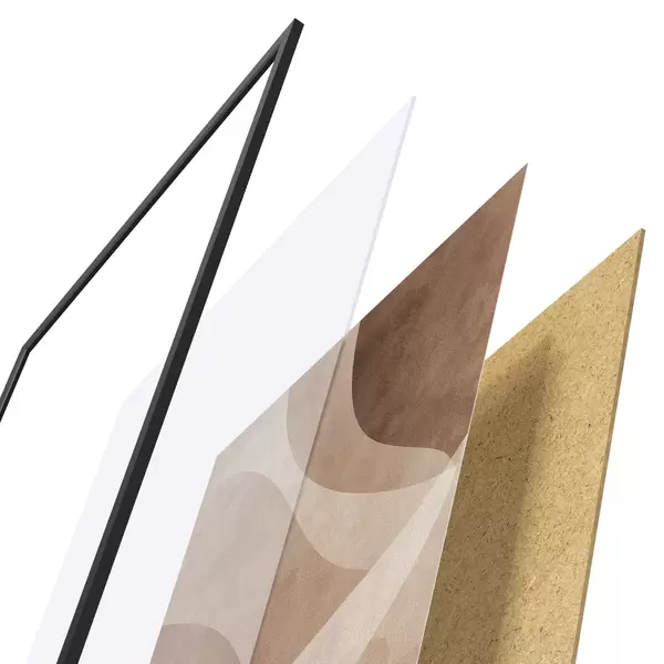 Plakat składa się z ramy, pleksi, wydrukowanego obrazu i podkładu z płyty wiórowej. Plakat można natychmiast zawiesić na ścianie dzięki uchwytom z tyłu.