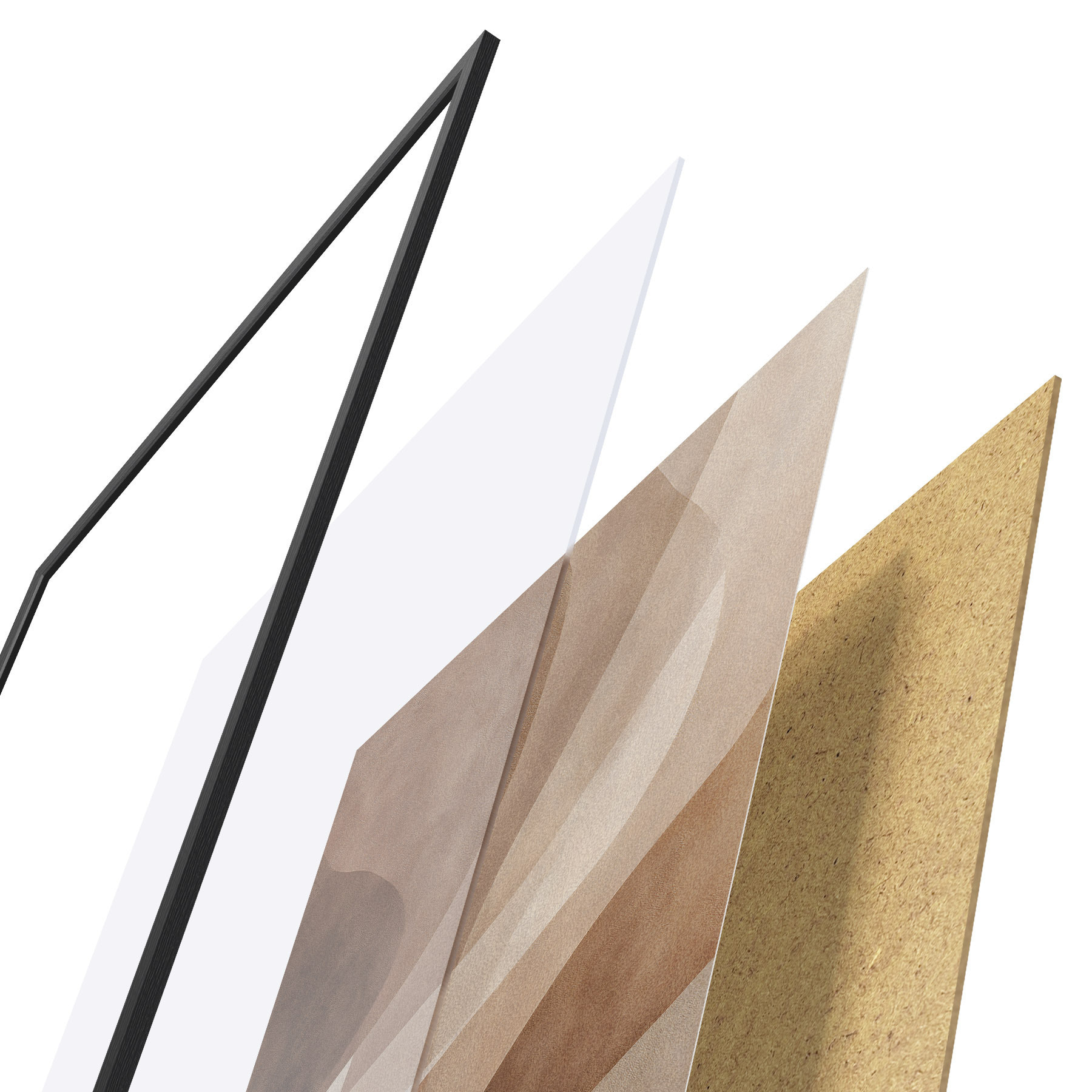 Plakat składa się z ramy, pleksi, wydrukowanego obrazu i podkładu z płyty wiórowej. Plakat można natychmiast zawiesić na ścianie dzięki uchwytom z tyłu.