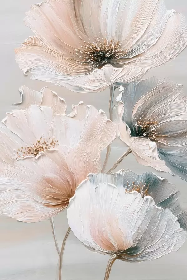 Poster Kompozycja kwiatowa z teksturowanymi pociągnięciami pędzla w beżowo-różowej palecie barw Nr f47961