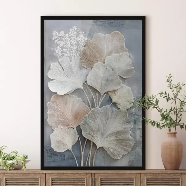 Poster Abstrakcyjna kompozycja kwiatowa w beżowo-niebieskiej palecie barw Nr f47963
