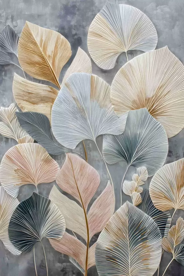 Plakat Wielobarwne dekoracyjne liście o wyraźnej fakturze na ciemnym tle f47964