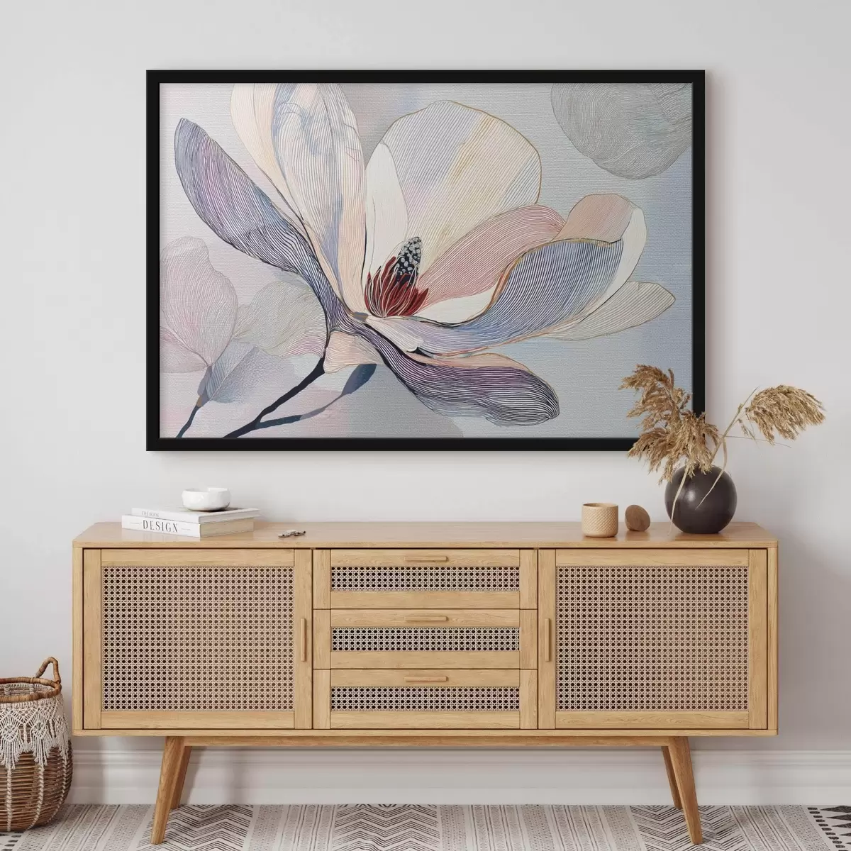 Plakat Stylizowane kwiaty magnolii o wyrafinowanych konturach f47968