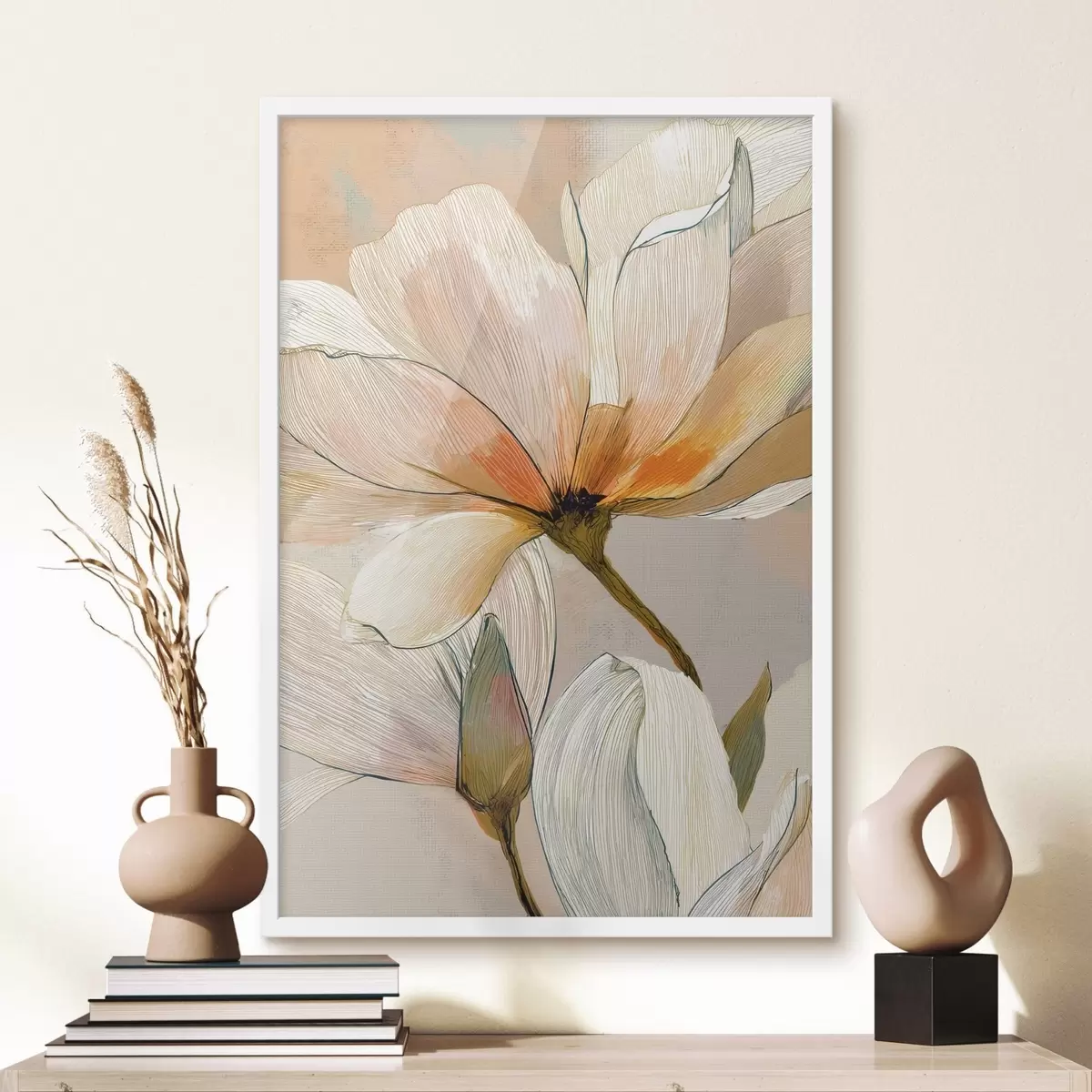 Plakat Kompozycja kwiatowa w odcieniach brzoskwini i błękitu f47969
