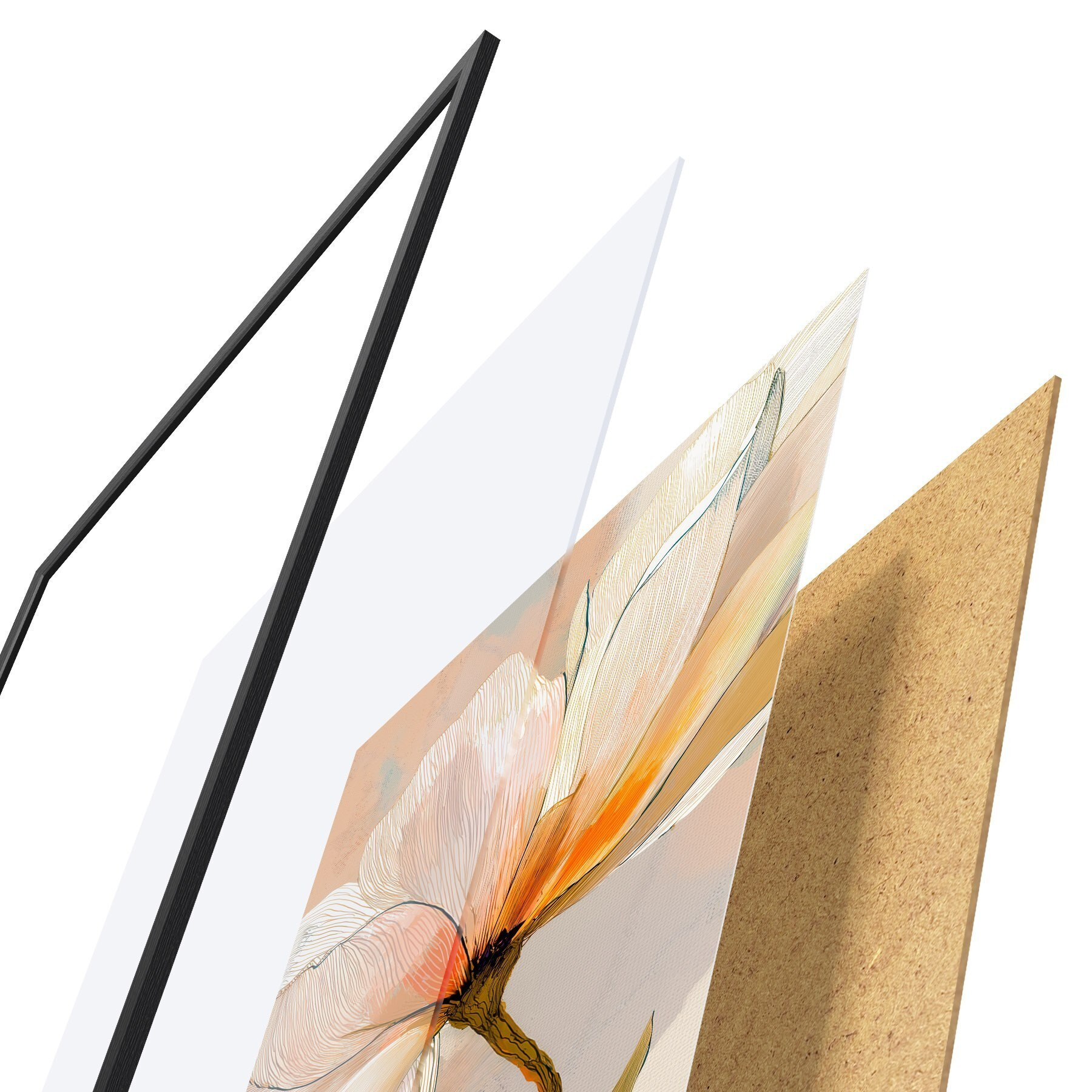 Plakat składa się z ramy, pleksi, wydrukowanego obrazu i podkładu z płyty wiórowej. Plakat można natychmiast zawiesić na ścianie dzięki uchwytom z tyłu.