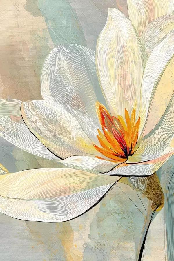 Poster Abstrakcyjne magnolie w pastelowej palecie barw z naciskiem na liniową grafikę Nr f47970
