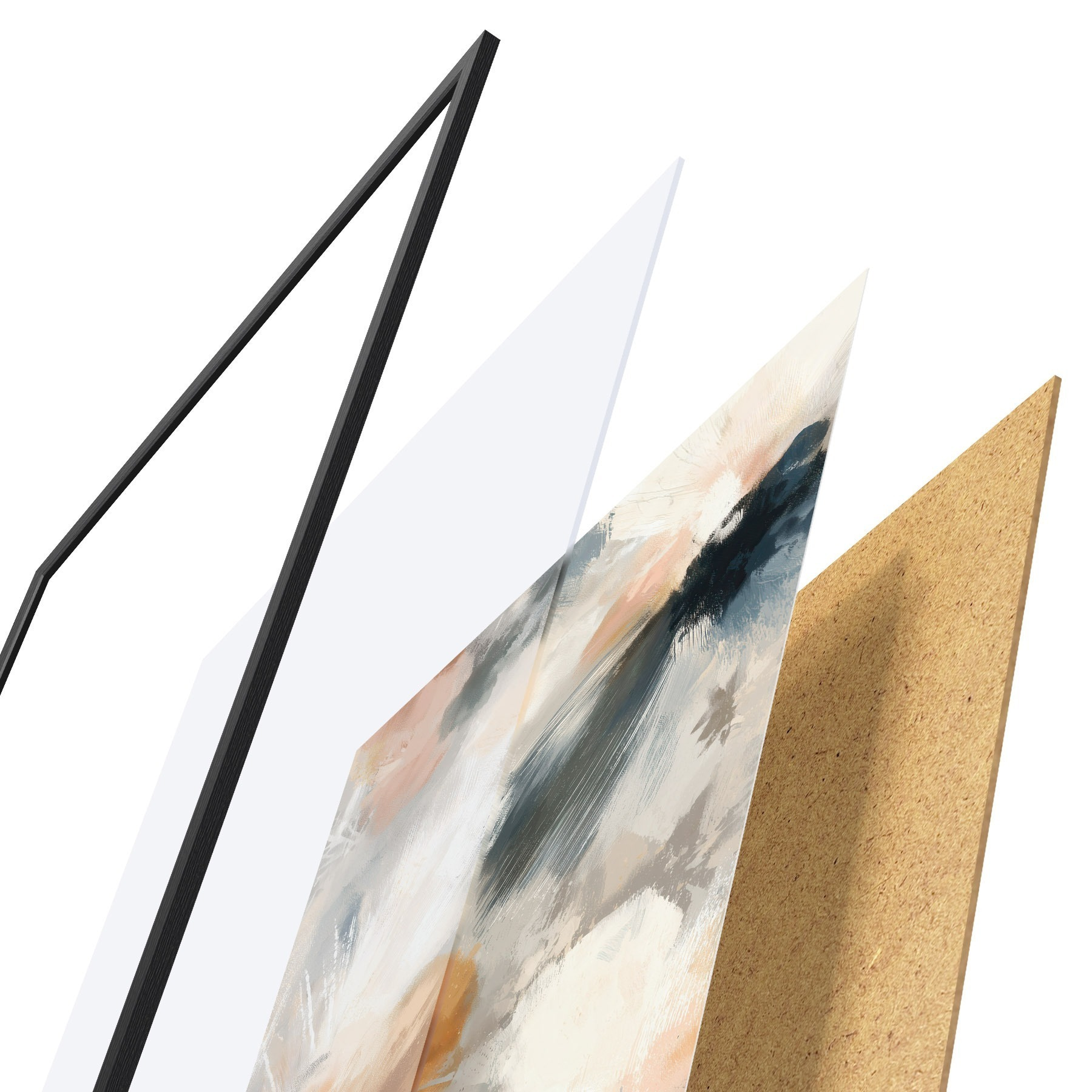 Plakat składa się z ramy, pleksi, wydrukowanego obrazu i podkładu z płyty wiórowej. Plakat można natychmiast zawiesić na ścianie dzięki uchwytom z tyłu.