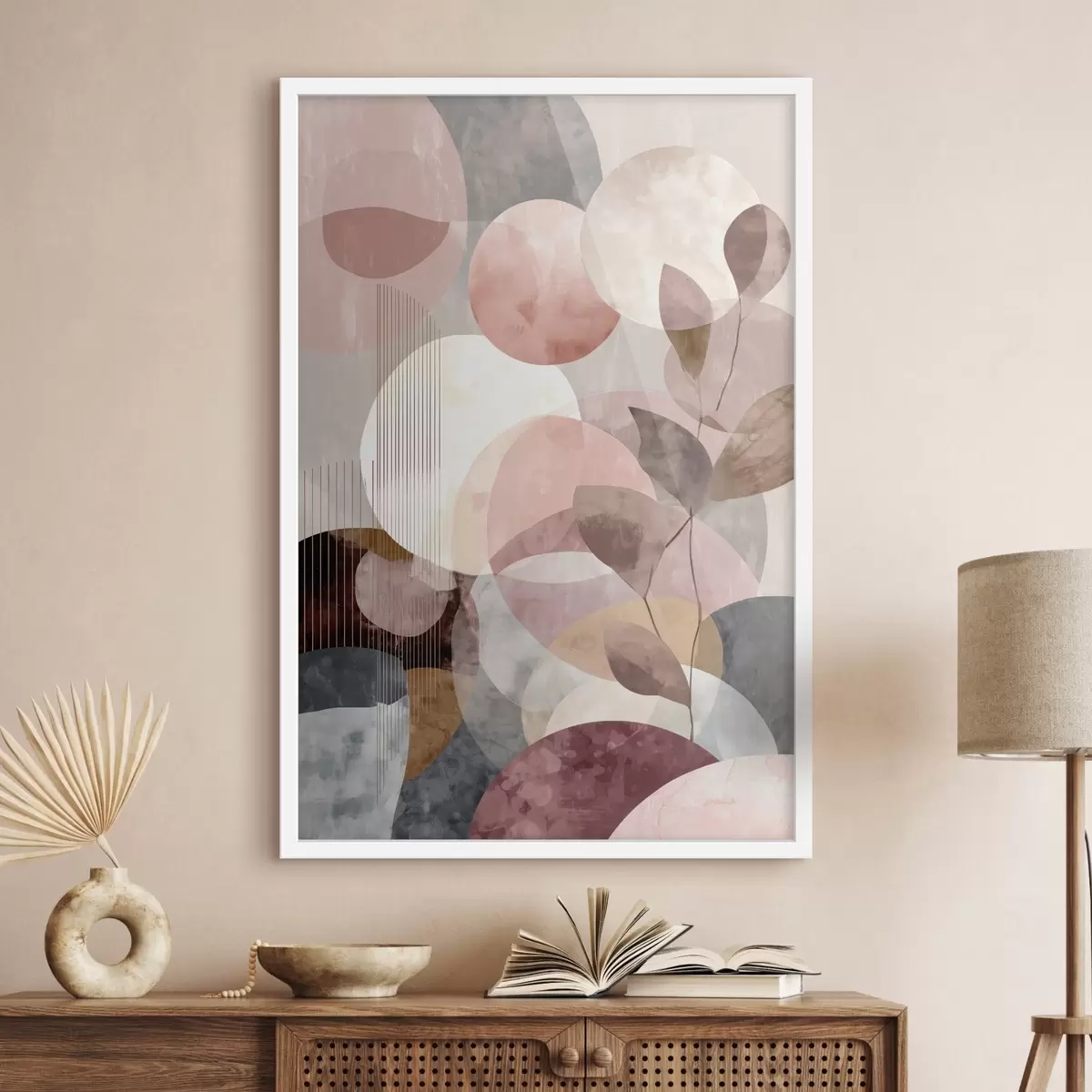 Plakat Geometryczne kształty i elementy botaniczne w nowoczesnym, minimalistycznym stylu f47975