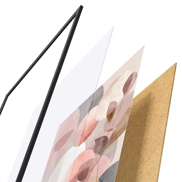 Plakat składa się z ramy, pleksi, wydrukowanego obrazu i podkładu z płyty wiórowej. Plakat można natychmiast zawiesić na ścianie dzięki uchwytom z tyłu.