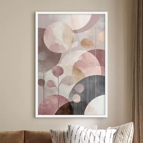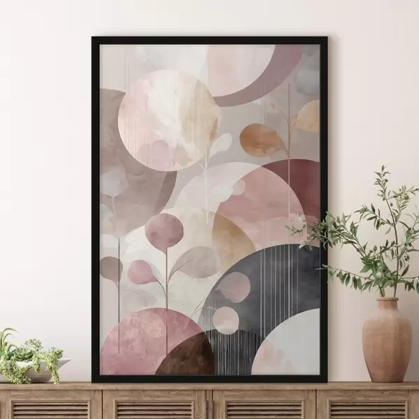 Plakat Kompozycja z półprzezroczystych okręgów i stylizowanych gałęzi f47978
