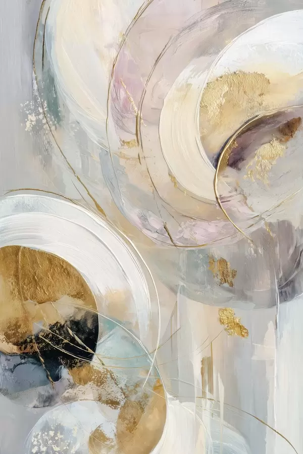 Poster Kompozycja z warstwowymi elementami okrągłymi i pociągnięciami pędzla Nr f47983